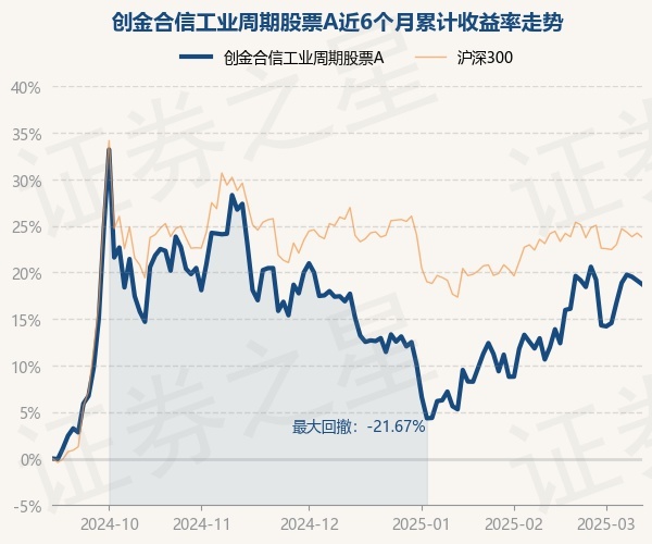 证券之星消息,3月12日,创金合信工业周期股票A最新单位净值为1.7204元,累计净值为1.7204元,较前一交易日下跌0.35%。历史数据显示该基金近1个月上涨5.13%,近3个月上涨0.86%,近6个月上涨18.72%,近1年下跌5.56%。该基金近6个月的累计收益率走势如下图: