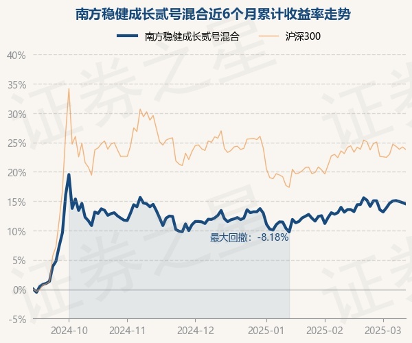证券之星消息,3月12日,南方稳健成长贰号混合最新单位净值为0.3605元,累计净值为2.8938元,较前一交易日下跌0.19%。历史数据显示该基金近1个月上涨0.5%,近3个月上涨0.98%,近6个月上涨14.52%,近1年上涨5.75%。该基金近6个月的累计收益率走势如下图: