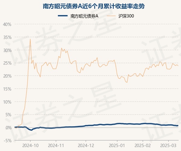 证券之星消息,3月12日,南方昭元债券A最新单位净值为1.095元,累计净值为1.162元,较前一交易日上涨0.08%。历史数据显示该基金近1个月下跌0.73%,近3个月下跌0.21%,近6个月上涨0.68%,近1年上涨3.24%。该基金近6个月的累计收益率走势如下图: