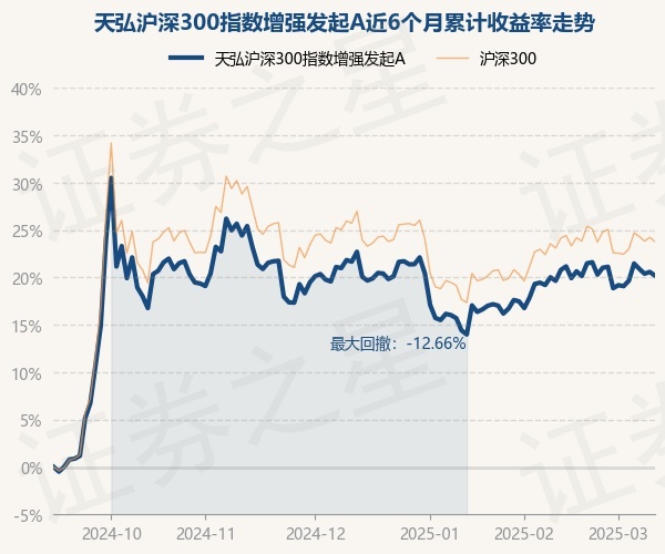 证券之星消息,3月12日,天弘沪深300指数增强发起A最新单位净值为1.2317元,累计净值为1.2317元,较前一交易日下跌0.32%。历史数据显示该基金近1个月上涨0.15%,近3个月下跌2.05%,近6个月上涨20.19%,近1年上涨9.0%。该基金近6个月的累计收益率走势如下图: