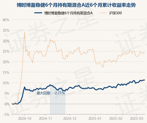 证券之星消息,3月12日,博时博盈稳健6个月持有期混合A最新单位净值为0.9141元,累计净值为0.9141元,较前一交易日上涨0.04%。历史数据显示该基金近1个月上涨1.72%,近3个月上涨2.39%,近6个月上涨11.26%,近1年上涨2.99%。该基金近6个月的累计收益率走势如下图: