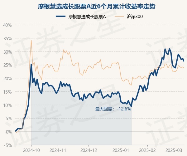 证券之星消息,3月12日,摩根慧选成长股票A最新单位净值为1.2637元,累计净值为1.2637元,较前一交易日下跌0.84%。历史数据显示该基金近1个月上涨2.34%,近3个月上涨9.25%,近6个月上涨26.24%,近1年上涨20.33%。该基金近6个月的累计收益率走势如下图:
