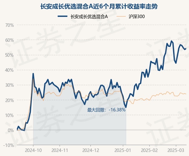证券之星消息,3月12日,长安成长优选混合A最新单位净值为0.6675元,累计净值为0.6675元,较前一交易日上涨0.41%。历史数据显示该基金近1个月上涨4.59%,近3个月上涨18.88%,近6个月上涨54.16%,近1年上涨28.79%。该基金近6个月的累计收益率走势如下图: