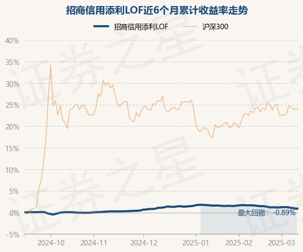 证券之星消息,3月12日,招商信用添利LOF最新单位净值为1.0485元,累计净值为1.8971元,较前一交易日上涨0.05%。历史数据显示该基金近1个月上涨0.01%,近3个月上涨0.53%,近6个月上涨1.65%,近1年上涨3.16%。该基金近6个月的累计收益率走势如下图: