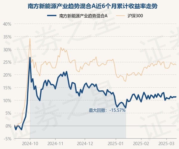 证券之星消息,3月12日,南方新能源产业趋势混合A最新单位净值为0.6308元,累计净值为0.6308元,较前一交易日上涨0.06%。历史数据显示该基金近1个月下跌0.49%,近3个月下跌4.24%,近6个月上涨11.29%,近1年上涨5.56%。该基金近6个月的累计收益率走势如下图: