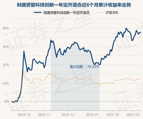 证券之星消息,3月12日,财通资管科技创新一年定开混合最新单位净值为1.2898元,累计净值为1.3698元,较前一交易日上涨0.0%。历史数据显示该基金近1个月下跌0.43%,近3个月上涨6.69%,近6个月上涨74.62%,近1年上涨52.4%。该基金近6个月的累计收益率走势如下图:
