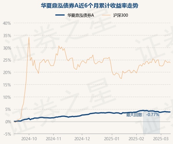 证券之星消息,3月12日,华夏鼎泓债券A最新单位净值为1.3221元,累计净值为1.3221元,较前一交易日上涨0.02%。历史数据显示该基金近1个月下跌0.6%,近3个月上涨0.53%,近6个月上涨3.84%,近1年上涨4.8%。该基金近6个月的累计收益率走势如下图: