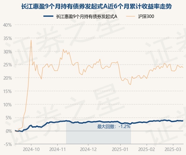 证券之星消息,3月12日,长江惠盈9个月持有债券发起式A最新单位净值为1.0163元,累计净值为1.0163元,较前一交易日上涨0.03%。历史数据显示该基金近1个月下跌0.04%,近3个月上涨0.11%,近6个月上涨3.71%,近1年上涨1.08%。该基金近6个月的累计收益率走势如下图: