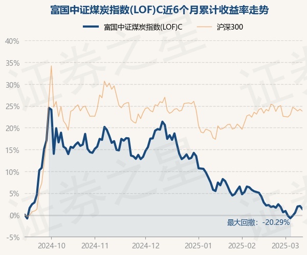 证券之星消息,3月12日,富国中证煤炭指数(LOF)C最新单位净值为1.773元,累计净值为1.773元,较前一交易日下跌0.67%。历史数据显示该基金近1个月下跌3.85%,近3个月下跌15.97%,近6个月上涨1.37%,近1年下跌17.76%。该基金近6个月的累计收益率走势如下图: