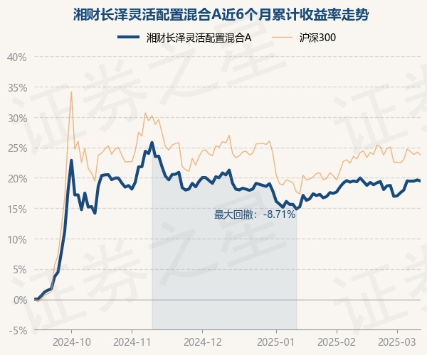证券之星消息,3月12日,湘财长泽灵活配置混合A最新单位净值为1.317元,累计净值为1.4595元,较前一交易日下跌0.15%。历史数据显示该基金近1个月下跌0.01%,近3个月下跌1.48%,近6个月上涨19.47%,近1年上涨16.13%。该基金近6个月的累计收益率走势如下图: