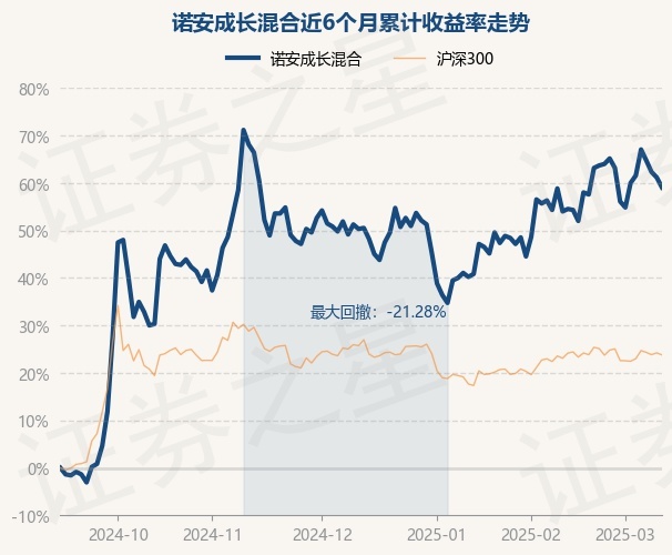 证券之星消息,3月12日,诺安成长混合最新单位净值为1.511元,累计净值为1.956元,较前一交易日下跌1.31%。历史数据显示该基金近1个月上涨0.13%,近3个月上涨5.66%,近6个月上涨59.05%,近1年上涨30.15%。该基金近6个月的累计收益率走势如下图:
