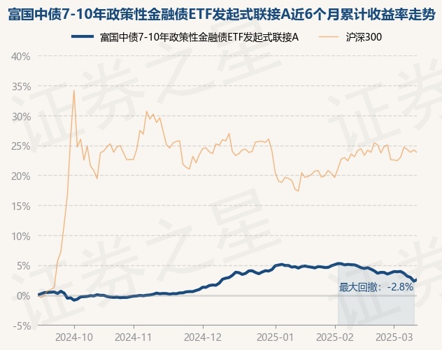 证券之星消息,3月12日,富国中债7-10年政策性金融债ETF发起式联接A最新单位净值为1.1361元,累计净值为1.1391元,较前一交易日上涨0.25%。历史数据显示该基金近1个月下跌2.37%,近3个月下跌0.34%,近6个月上涨2.57%,近1年上涨7.34%。该基金近6个月的累计收益率走势如下图: