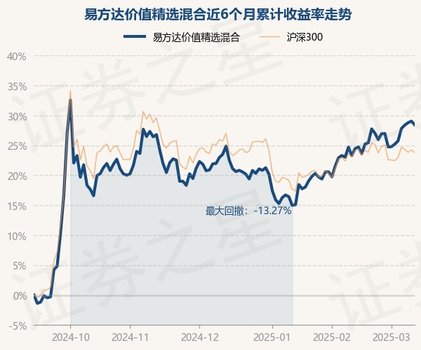 证券之星消息,3月12日,易方达价值精选混合最新单位净值为1.1354元,累计净值为3.9104元,较前一交易日下跌0.46%。历史数据显示该基金近1个月上涨2.99%,近3个月上涨2.89%,近6个月上涨28.48%,近1年上涨4.75%。该基金近6个月的累计收益率走势如下图: