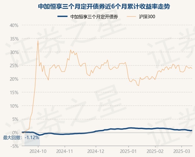 证券之星消息,3月12日,中加恒享三个月定开债券最新单位净值为1.0363元,累计净值为1.0942元,较前一交易日上涨0.06%。历史数据显示该基金近1个月下跌0.8%,近3个月下跌0.3%,近6个月上涨0.68%,近1年上涨2.64%。该基金近6个月的累计收益率走势如下图: