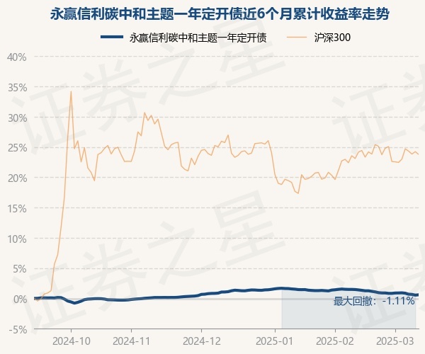 证券之星消息,3月12日,永赢信利碳中和主题一年定开债最新单位净值为1.0158元,累计净值为1.1098元,较前一交易日上涨0.05%。历史数据显示该基金近1个月下跌0.88%,近3个月下跌0.51%,近6个月上涨0.6%,近1年上涨2.88%。该基金近6个月的累计收益率走势如下图: