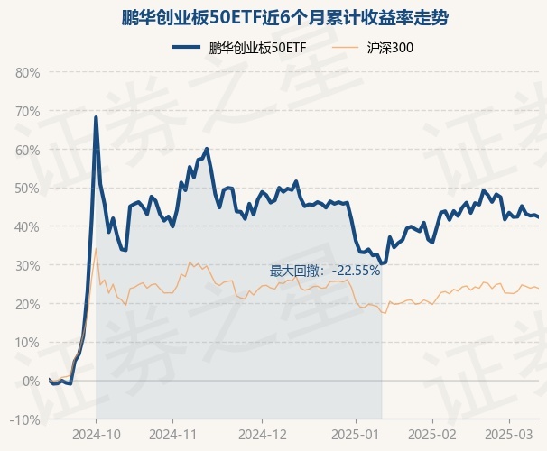 证券之星消息,3月12日,鹏华创业板50ETF最新单位净值为0.9468元,累计净值为0.9468元,较前一交易日下跌0.37%。历史数据显示该基金近1个月下跌1.09%,近3个月下跌6.09%,近6个月上涨42.29%,近1年上涨19.27%。该基金近6个月的累计收益率走势如下图: