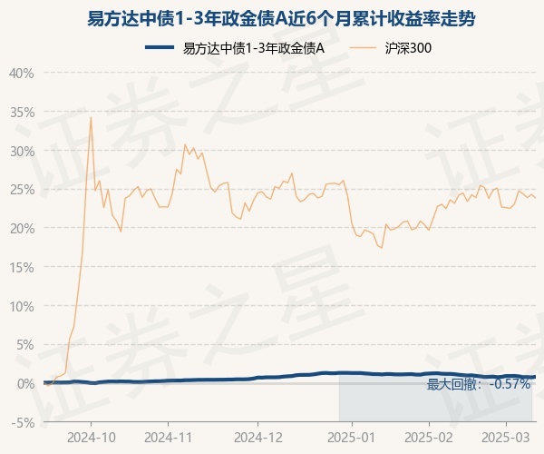 证券之星消息,3月12日,易方达中债1-3年政金债A最新单位净值为1.0002元,累计净值为1.1566元,较前一交易日上涨0.07%。历史数据显示该基金近1个月下跌0.37%,近3个月下跌0.09%,近6个月上涨0.76%,近1年上涨2.55%。该基金近6个月的累计收益率走势如下图: