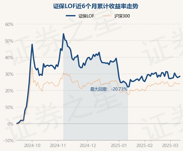 证券之星消息,3月12日,证保LOF最新单位净值为0.8388元,累计净值为1.8957元,较前一交易日上涨0.33%。历史数据显示该基金近1个月下跌1.33%,近3个月下跌10.06%,近6个月上涨28.55%,近1年上涨20.0%。该基金近6个月的累计收益率走势如下图: