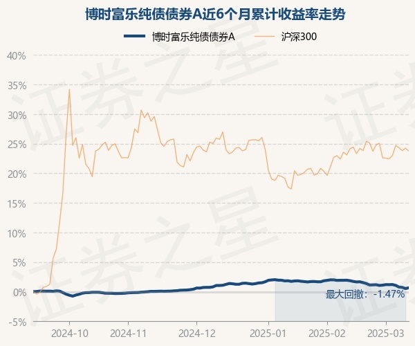 证券之星消息,3月12日,博时富乐纯债债券A最新单位净值为1.076元,累计净值为1.2064元,较前一交易日上涨0.12%。历史数据显示该基金近1个月下跌1.25%,近3个月下跌0.43%,近6个月上涨0.65%,近1年上涨2.69%。该基金近6个月的累计收益率走势如下图: