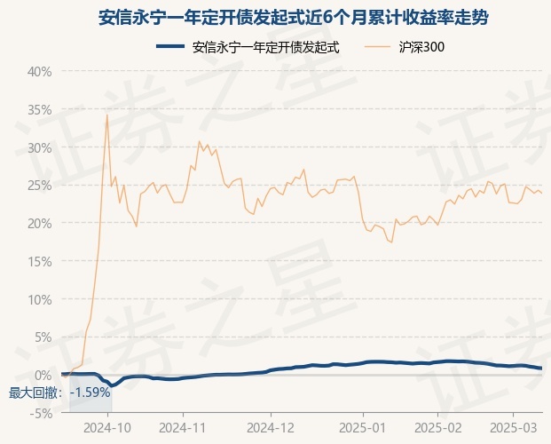 证券之星消息,3月12日,安信永宁一年定开债发起式最新单位净值为1.038元,累计净值为1.1467元,较前一交易日下跌0.04%。历史数据显示该基金近1个月下跌0.88%,近3个月下跌0.19%,近6个月上涨0.79%,近1年上涨3.73%。该基金近6个月的累计收益率走势如下图:
