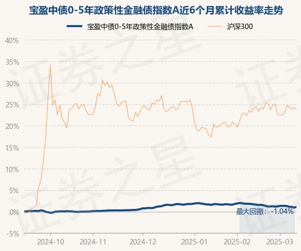 证券之星消息,3月12日,宝盈中债0-5年政策性金融债指数A最新单位净值为1.0091元,累计净值为1.0391元,较前一交易日上涨0.13%。历史数据显示该基金近1个月下跌0.73%,近3个月下跌0.2%,近6个月上涨1.07%,近1年上涨3.22%。该基金近6个月的累计收益率走势如下图: