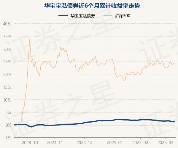 证券之星消息,3月12日,华宝宝泓债券最新单位净值为1.0767元,累计净值为1.1317元,较前一交易日上涨0.07%。历史数据显示该基金近1个月下跌0.74%,近3个月下跌0.11%,近6个月上涨1.25%,近1年上涨2.93%。该基金近6个月的累计收益率走势如下图: