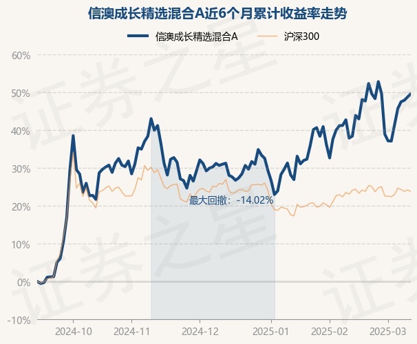 证券之星消息,3月12日,信澳成长精选混合A最新单位净值为0.5319元,累计净值为0.5319元,较前一交易日上涨0.57%。历史数据显示该基金近1个月上涨4.81%,近3个月上涨13.97%,近6个月上涨49.62%,近1年上涨15.86%。该基金近6个月的累计收益率走势如下图: