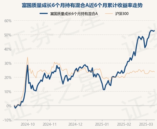 证券之星消息,3月12日,富国质量成长6个月持有混合A最新单位净值为1.1231元,累计净值为1.1231元,较前一交易日上涨0.29%。历史数据显示该基金近1个月上涨14.29%,近3个月上涨18.67%,近6个月上涨52.84%,近1年上涨50.99%。该基金近6个月的累计收益率走势如下图: