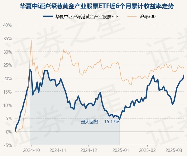 证券之星消息,3月12日,华夏中证沪深港黄金产业股票ETF最新单位净值为1.3482元,累计净值为1.3482元,较前一交易日上涨1.31%。历史数据显示该基金近1个月上涨2.07%,近3个月上涨5.66%,近6个月上涨21.15%,近1年上涨18.01%。该基金近6个月的累计收益率走势如下图: