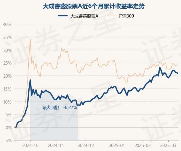 证券之星消息,3月12日,大成睿鑫股票A最新单位净值为1.3128元,累计净值为1.3128元,较前一交易日下跌0.27%。历史数据显示该基金近1个月上涨2.09%,近3个月上涨7.5%,近6个月上涨20.77%,近1年上涨20.04%。该基金近6个月的累计收益率走势如下图: