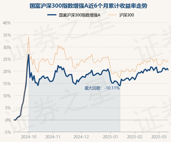 证券之星消息,3月12日,国富沪深300指数增强A最新单位净值为1.4692元,累计净值为1.8123元,较前一交易日下跌0.44%。历史数据显示该基金近1个月上涨0.53%,近3个月上涨0.14%,近6个月上涨20.53%,近1年上涨7.78%。该基金近6个月的累计收益率走势如下图: