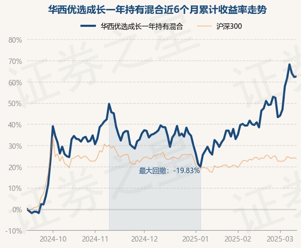 证券之星消息,3月12日,华西优选成长一年持有混合最新单位净值为1.143元,累计净值为1.143元,较前一交易日上涨0.16%。历史数据显示该基金近1个月上涨14.68%,近3个月上涨17.22%,近6个月上涨62.5%,近1年上涨29.11%。该基金近6个月的累计收益率走势如下图:
