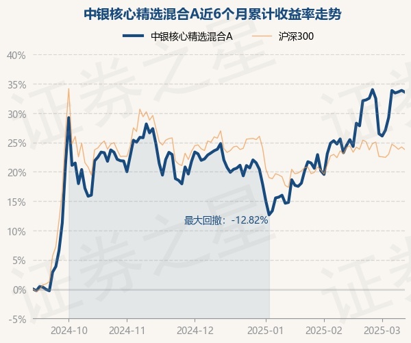 证券之星消息,3月12日,中银核心精选混合A最新单位净值为0.7838元,累计净值为0.7838元,较前一交易日下跌0.22%。历史数据显示该基金近1个月上涨6.35%,近3个月上涨7.02%,近6个月上涨33.57%,近1年上涨19.48%。该基金近6个月的累计收益率走势如下图: