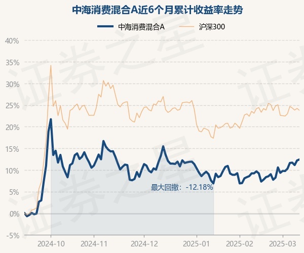 证券之星消息,3月12日,中海消费混合A最新单位净值为2.949元,累计净值为3.159元,较前一交易日上涨0.2%。历史数据显示该基金近1个月上涨2.93%,近3个月下跌2.64%,近6个月上涨12.43%,近1年下跌7.32%。该基金近6个月的累计收益率走势如下图: