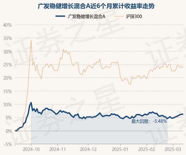 证券之星消息,3月12日,广发稳健增长混合A最新单位净值为1.4772元,累计净值为4.5372元,较前一交易日上涨0.07%。历史数据显示该基金近1个月下跌0.4%,近3个月下跌0.37%,近6个月上涨6.27%,近1年上涨0.63%。该基金近6个月的累计收益率走势如下图: