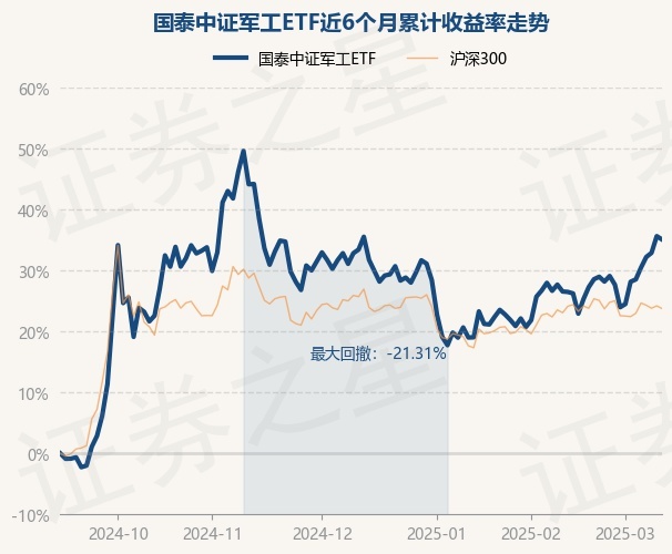 证券之星消息,3月12日,国泰中证军工ETF最新单位净值为1.0958元,累计净值为1.0958元,较前一交易日下跌0.4%。历史数据显示该基金近1个月上涨5.8%,近3个月下跌0.33%,近6个月上涨35.12%,近1年上涨20.78%。该基金近6个月的累计收益率走势如下图: