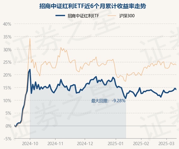 证券之星消息,3月12日,招商中证红利ETF最新单位净值为1.506元,累计净值为1.826元,较前一交易日下跌0.4%。历史数据显示该基金近1个月上涨0.34%,近3个月下跌4.23%,近6个月上涨14.15%,近1年上涨4.92%。该基金近6个月的累计收益率走势如下图: