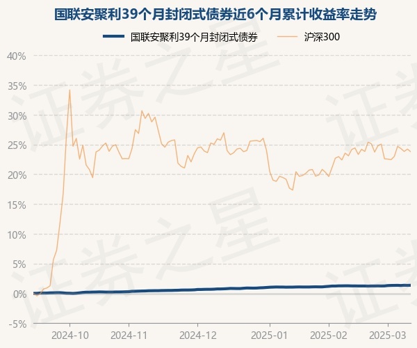 证券之星消息,3月12日,国联安聚利39个月封闭式债券最新单位净值为1.0084元,累计净值为1.0623元,较前一交易日上涨0.02%。历史数据显示该基金近1个月上涨0.09%,近3个月上涨0.59%,近6个月上涨1.36%,近1年上涨3.17%。该基金近6个月的累计收益率走势如下图: