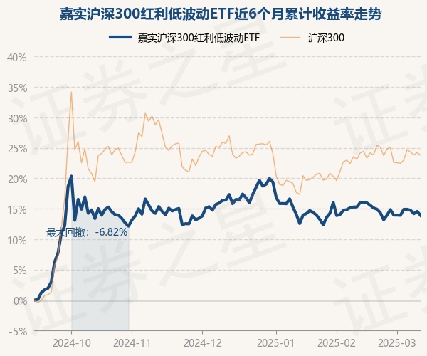 证券之星消息,3月12日,嘉实沪深300红利低波动ETF最新单位净值为1.3313元,累计净值为1.5976元,较前一交易日下跌0.57%。历史数据显示该基金近1个月下跌1.19%,近3个月下跌2.92%,近6个月上涨13.83%,近1年上涨11.86%。该基金近6个月的累计收益率走势如下图: