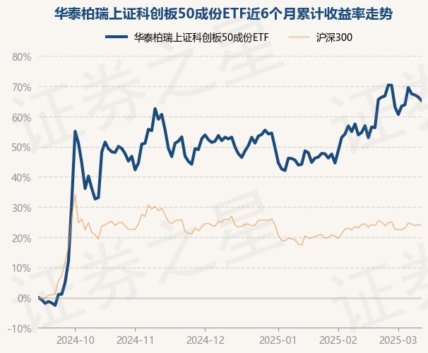 证券之星消息,3月12日,华泰柏瑞上证科创板50成份ETF最新单位净值为1.1255元,累计净值为0.7859元,较前一交易日下跌0.72%。历史数据显示该基金近1个月上涨4.89%,近3个月上涨7.89%,近6个月上涨65.2%,近1年上涨33.34%。该基金近6个月的累计收益率走势如下图: