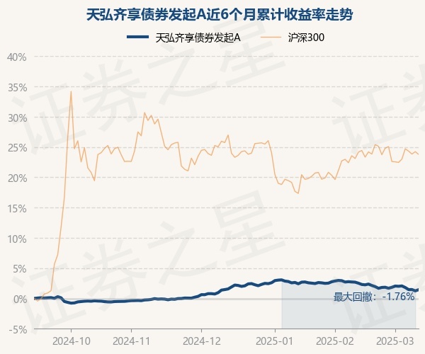 证券之星消息,3月12日,天弘齐享债券发起A最新单位净值为1.0568元,累计净值为1.1404元,较前一交易日上涨0.19%。历史数据显示该基金近1个月下跌1.24%,近3个月下跌0.12%,近6个月上涨1.44%,近1年上涨3.73%。该基金近6个月的累计收益率走势如下图: