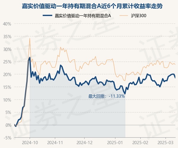 证券之星消息,3月12日,嘉实价值驱动一年持有期混合A最新单位净值为0.9504元,累计净值为0.9504元,较前一交易日下跌1.12%。历史数据显示该基金近1个月下跌1.2%,近3个月下跌0.28%,近6个月上涨18.61%,近1年上涨9.47%。该基金近6个月的累计收益率走势如下图: