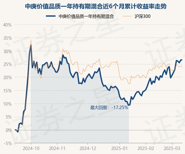 证券之星消息,3月12日,中庚价值品质一年持有期混合最新单位净值为1.5507元,累计净值为1.5507元,较前一交易日上涨0.06%。历史数据显示该基金近1个月上涨6.78%,近3个月上涨2.53%,近6个月上涨26.56%,近1年上涨13.43%。该基金近6个月的累计收益率走势如下图: