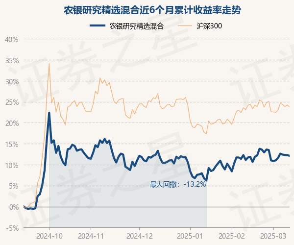 证券之星消息,3月12日,农银研究精选混合最新单位净值为3.2399元,累计净值为3.2399元,较前一交易日下跌0.13%。历史数据显示该基金近1个月下跌0.14%,近3个月下跌1.04%,近6个月上涨12.11%,近1年下跌1.2%。该基金近6个月的累计收益率走势如下图: