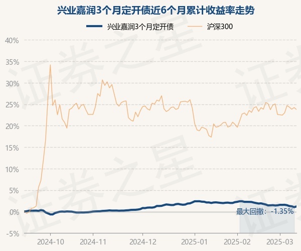 兴业嘉润3个月定开债为债券型-长债基金,根据最新一期基金季报显示,该基金资产配置:无股票类资产,债券占净值比134.18%,现金占净值比0.06%。