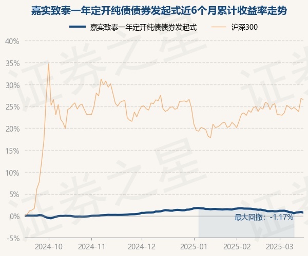 证券之星消息,3月13日,嘉实致泰一年定开纯债债券发起式最新单位净值为1.0362元,累计净值为1.0758元,较前一交易日上涨0.07%。历史数据显示该基金近1个月下跌0.79%,近3个月下跌0.36%,近6个月上涨0.81%,近1年上涨3.03%。该基金近6个月的累计收益率走势如下图: