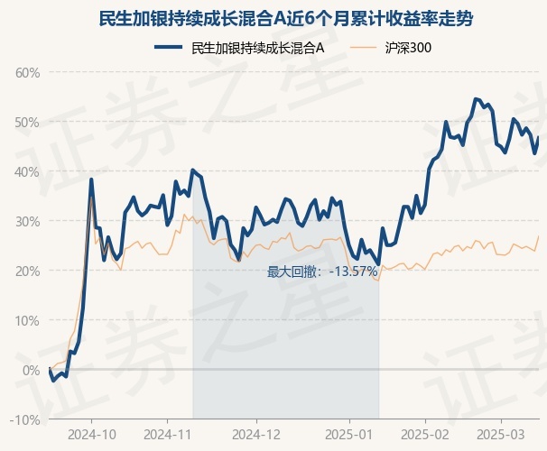 证券之星消息,3月13日,民生加银持续成长混合A最新单位净值为1.5977元,累计净值为1.5977元,较前一交易日上涨0.0%。历史数据显示该基金近1个月下跌2.27%,近3个月上涨8.42%,近6个月上涨43.48%,近1年上涨32.31%。该基金近6个月的累计收益率走势如下图: