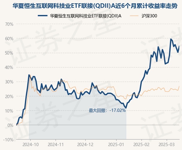 证券之星消息,3月13日,华夏恒生互联网科技业ETF联接(QDII)A最新单位净值为0.8264元,累计净值为0.8264元,较前一交易日下跌1.81%。历史数据显示该基金近1个月上涨7.96%,近3个月上涨21.03%,近6个月上涨50.25%,近1年上涨47.94%。该基金近6个月的累计收益率走势如下图: