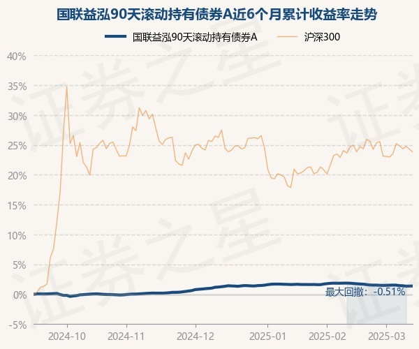 国联益泓90天滚动持有债券A为债券型-混合一级基金,根据最新一期基金季报显示,该基金资产配置:无股票类资产,债券占净值比121.63%,现金占净值比5.14%。