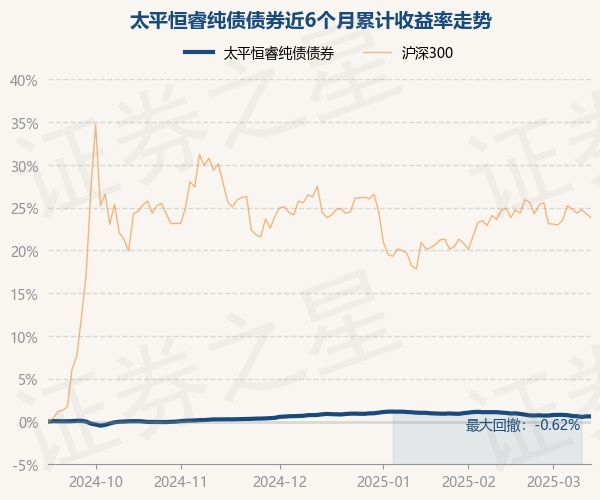 证券之星消息,3月13日,太平恒睿纯债债券最新单位净值为1.0792元,累计净值为1.1242元,较前一交易日上涨0.0%。历史数据显示该基金近1个月下跌0.43%,近3个月下跌0.18%,近6个月上涨0.65%,近1年上涨2.4%。该基金近6个月的累计收益率走势如下图: